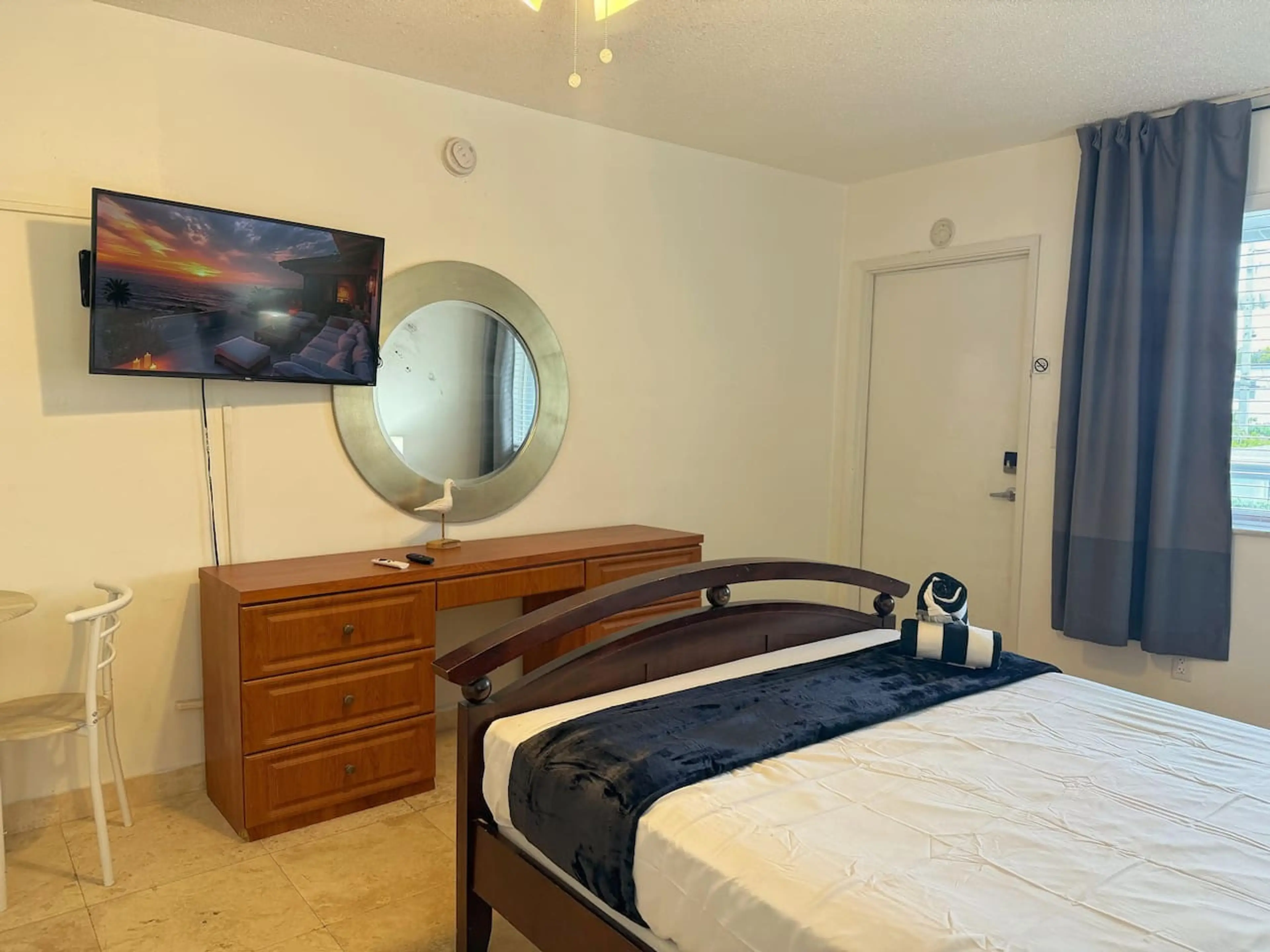 Relax in this cozy and inviting studio just moments from the beach. Featuring a comfortable double bed and a convenient workstation, this space is perfect for a peaceful beach escape. Enjoy the wood style, unwind by the gated pool, or explore nearby restaurants, the pier, and local attractions. A wa...
